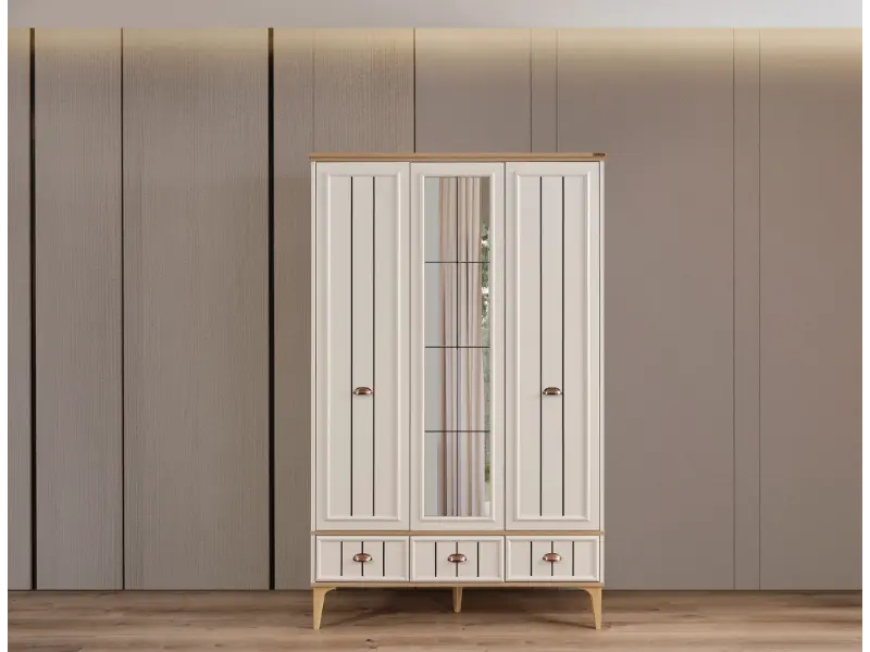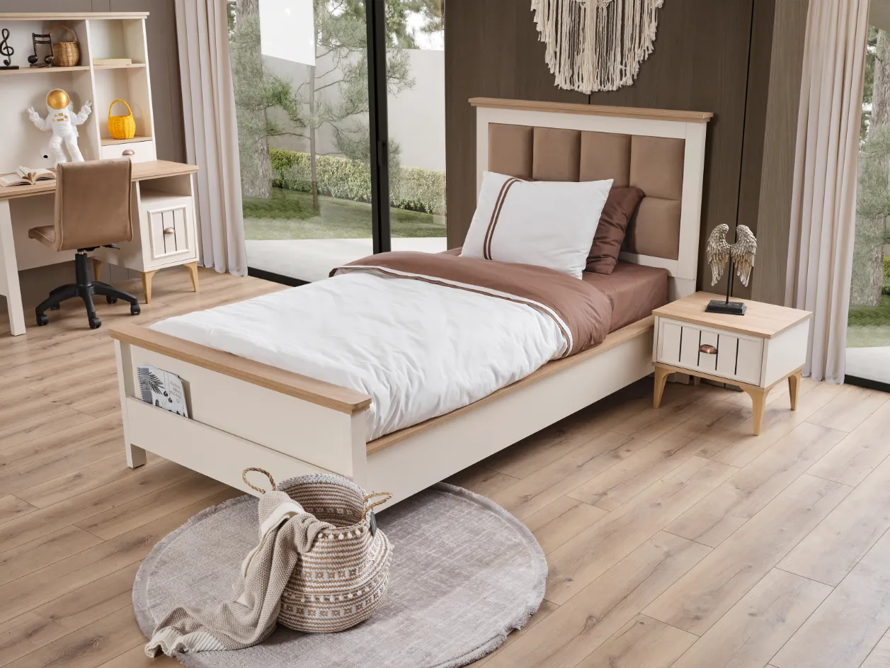 Takım İçeriği 1 adet 3 kapılı gardırop, 1 adet çalışma masası, 1 adet başlık ve 1 adet karyoladan oluşmaktadır. Malzeme Yonga Levha Kapak 3 Kapaklı Yatak Ölçüsü 100x200 Gardırop Malzemesi Yonga Levha Komodin Malzemesi Yonga Levha Dolap Fonksiyonu Menteşeli Ayak Malzemesi Güçlendirilmiş Plastik Fonksiyon Karyola Gardırop Ölçüsü Genişlik 128 cm, Derinlik 52 cm, Yükseklik 206 cm Çalışma masası Ölçüsü Genişlik 124 cm, Derinlik 60 cm, Yükseklik 75 cm Karyola Ölçüsü Genişlik 212 cm, Derinlik 54 cm, Yükseklik 117 cm Başlık Ölçüsü Genişlik 124 cm, Derinlik 9 cm, Yükseklik 121 cm